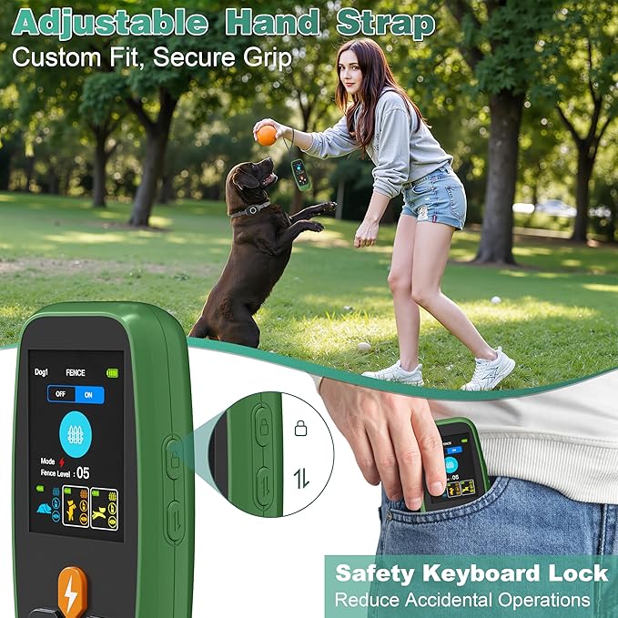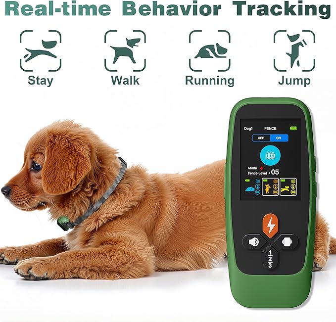 - 4-in-1 Complete Pet Management: Elevate your pet's safety and behavior with our innovative system. It seamlessly integrates a Wireless Dog Fence, a versatile Dog Training Collar, an intelligent Anti-Bark Mode, and a real-time Pet Status Display – your all-in-one solution for simplified pet care and enhanced outdoor freedom.