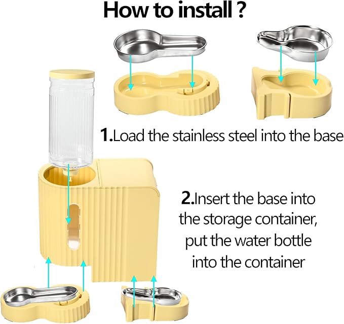 - 2 in1 New Design Automatic Cat Feeder and Water:Gravity automatic cat and dog food feeder and water dispenser set with stainless steel bowl,The bottom of the cat feeder has been upgraded with a movable stainless steel bowl to keep food fresher and easy to clean, not easily deformed, not rusty,sturdy and sanitary. Our automatic cat feeder and water system combines a gravity cat feeder and water dispenser, offering busy pet owners an efficient way to ensure their furry friends have consistent access to food and hydration