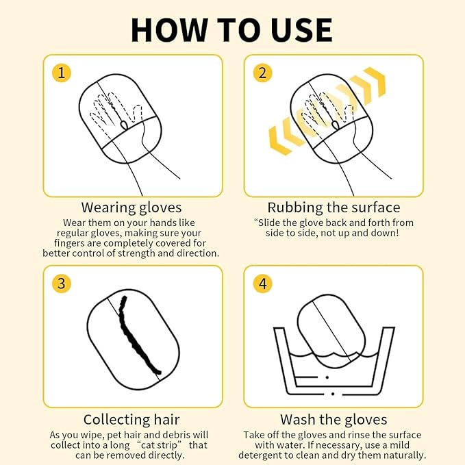 - Versatile for All Surfaces :Cat Dog Electrostatic Hair Remover Grooming Glove Tool From clothes and sofas to carpets and car seats, these cat hair remover work on virtually any fabric surface. Perfect for pet owners or anyone dealing with lint and dust on multiple surfaces