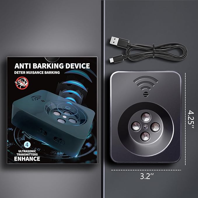 - 【Safe and Friendly Dog Barking Silencer】Our anti-barking devices use ultrasonic technology based on a dog's hearing range to gently discourage excessive barking without harm. the ultrasound Bark Box emits is customized specifically for dogs, it can't be heard by humans or other pets, but the dog will get annoyed and stop barking. When it stops dogs from barking, there is no irritating smell, no electric shock, no beeping, and it will not cause any harm to dogs. Your dog's well-being is our top priority, and our no barking device for dogs ensures a humane approach to training.