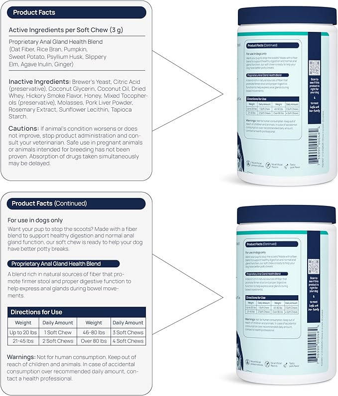 - RELIEF FROM SCOOTING – Scooting, licking, or straining can be signs your dog’s digestive system isn’t working as smoothly as it should. This daily supplement helps support normal stool consistency and gut function, the key to natural anal gland expression.