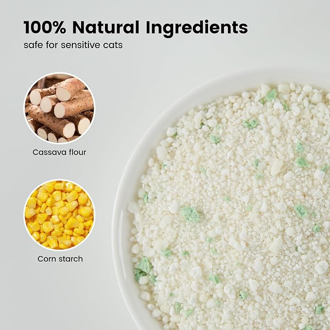 - Natural & Plant-Based — Made with cassava flour, corn starch, and corn meal, completely free from artificial fragrances. Safe for cats.