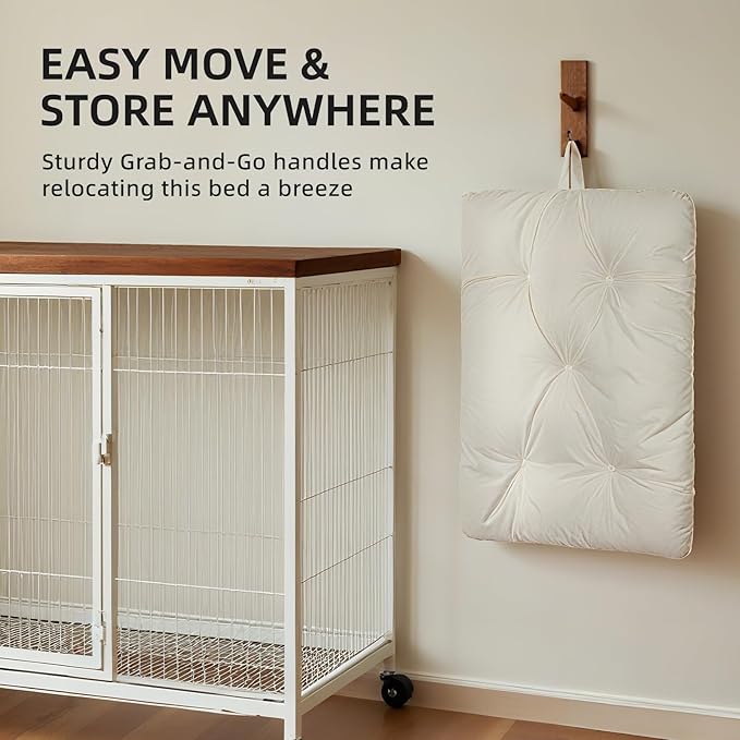 - [ EASY MOVE & STORE ANYWHERE ] Sturdy Grab-and-Go handles make relocating this bed a breeze – from room to room, car trips, or hanging neatly on hooks/walls. Zero clutter, maximum convenience!