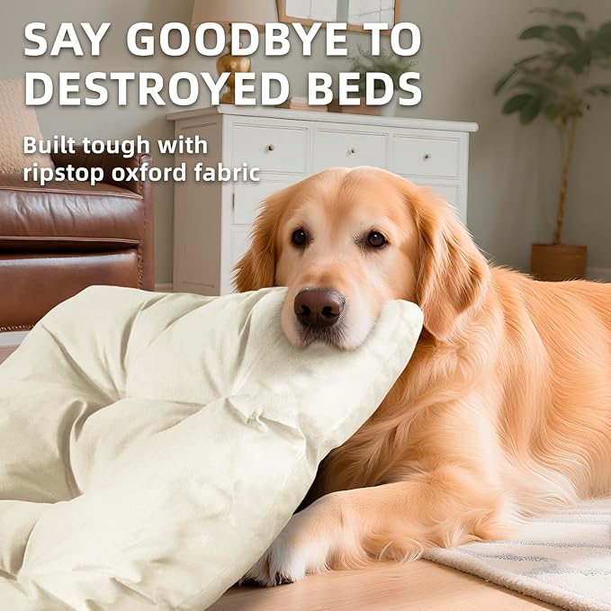Dog Beds Large Sized Dog Washable Pet Bed Mattress with Oxford Fabric Pillow Cushion for Crate Kennel Pet Easy-Carry Cat Beds,35”Lx23”W,Beige