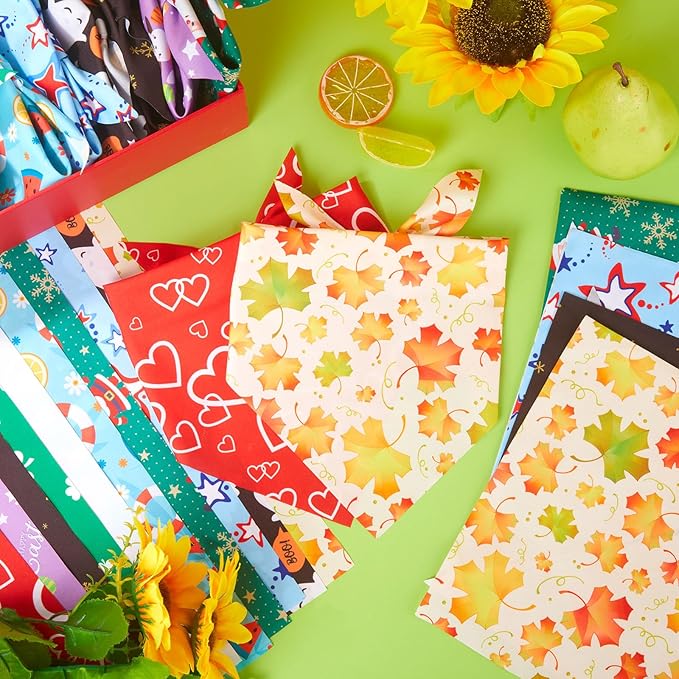 - Sweet Design: our dog bandana for dogs are printed with a variety of Holiday designs, such as Maple leaf, heart shape, ghost, four-leaf clover festival elements, Meet your dog's holiday needs all year round