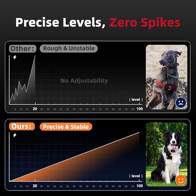 - 【Secure, Gentle & Consistently Reliable】This dog training collar features a reliable safety lock to prevent accidental activation. Smooth, linear static level adjustment ensures stable, predictable intensity without sudden jumps, and your chosen setting stays the same every time you power on. Removable contact points provide a softer feel for sensitive dogs.