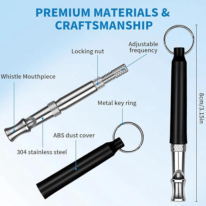 - Selected Materials: This dog whistle to make dogs come to you is made of 304 stainless steel, and the sound it produces is high enough that only dogs can hear it, but humans cannot. This special range setting ensures that even if the dog whistle training is used for a long time, it will not damage the pet's hearing or other health conditions.