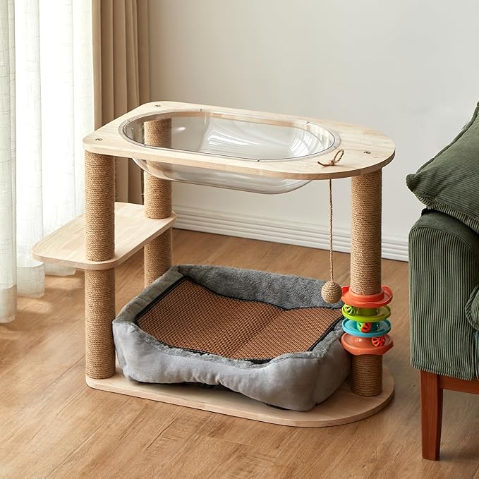 - Dual-Level Design: This cat apartment features two spacious platforms for lounging and a cozy, plush-lined bed for napping.does not take up too much space, and at the same time can provide ample space and entertainment for cats.