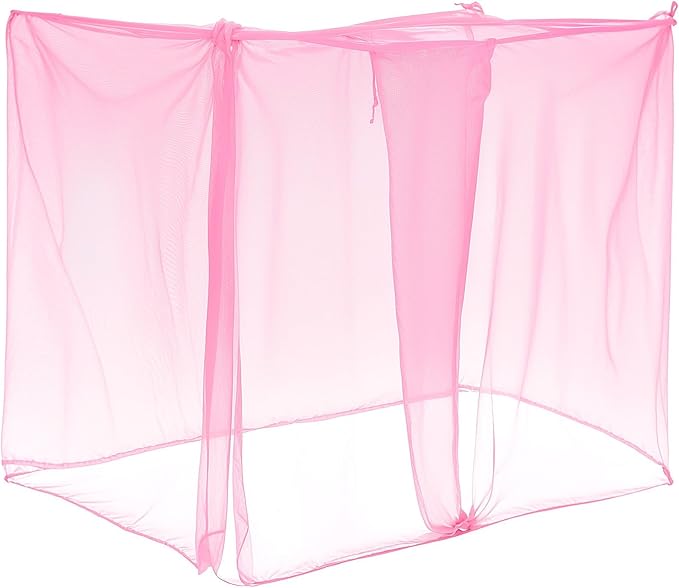 4 Corners Mosquito Net for Mosquiteros para Camas Bed Canopies Netting Bed Drapes Rectangular Mosquito Mesh for Camping Home Outdoor Travel(Pink,L75 X W47 X H59 Inch,Opening)
