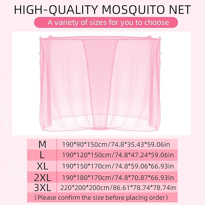- Size details: Our canopies use a 4-corner mosquito net with a single-side opening design. There are available in a variety of sizes.Whether it is a single bed or a double bed, you can choose a suitable product here. Please carefully check the size details of each product before purchasing