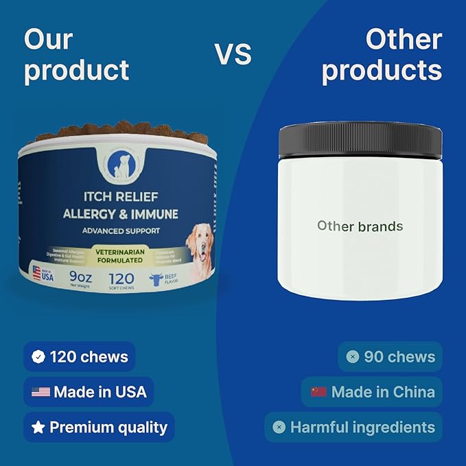 - Powerful Allergy & Immune Support Formula - Advanced allergy relief for dogs with colostrum, quercetin, salmon oil, hemp seed oil, and vitamin C to help reduce itching, hot spots, watery eyes, and seasonal allergies while boosting immune defenses.