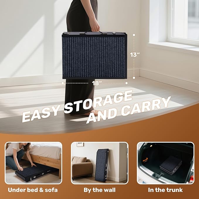 - ✅ Non-Slip Surface – Textured carpet surface offers superior grip to prevent slips and reduce impact on paws and joints, ensuring safe, confident climbs and descents