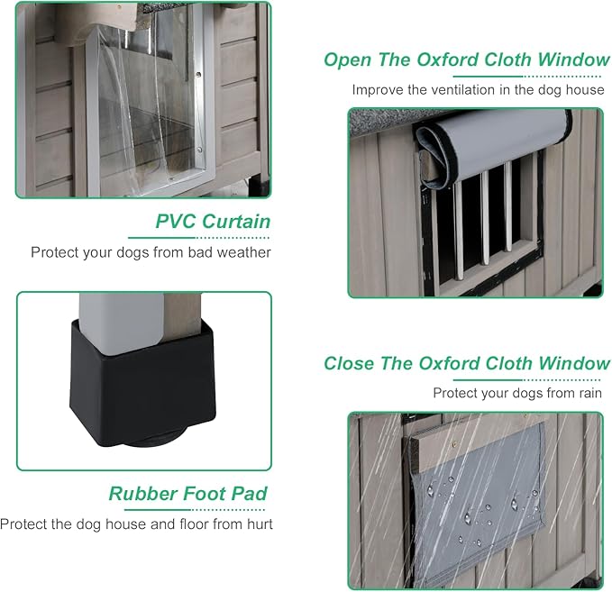 - 【Convenient Oxford Cloth Window】The Oxford cloth window of the dog kennel features waterproof. On rainy days, it can be simply fixed with sticker to prevent wind and rain outside from entering the dog house to disturb the dog's leisure time. On sunny days, roll up Oxford cloth to provide ample fresh air and sunlight inside the dog kennel.