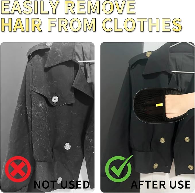 - 【Reusable & Eco-Friendly Pet Hair Removal Gloves】Say goodbye to disposable lint rollers! These pet hair removal gloves are washable and reusable, offering a cost-effective and eco-friendly way to remove pet hair from clothes, sofas, carpets, and more. Simply rinse or machine wash after use—no waste, no hassle