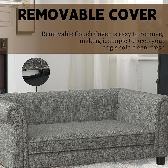 • 【FURNITURE-GRADE DESIGN】:Designed like human furniture, The pet couch features button-tufted backs, armrests, and a modern aesthetic that complements home decor. The elevated sofa gives pets a sense of security while promoting family bonding.